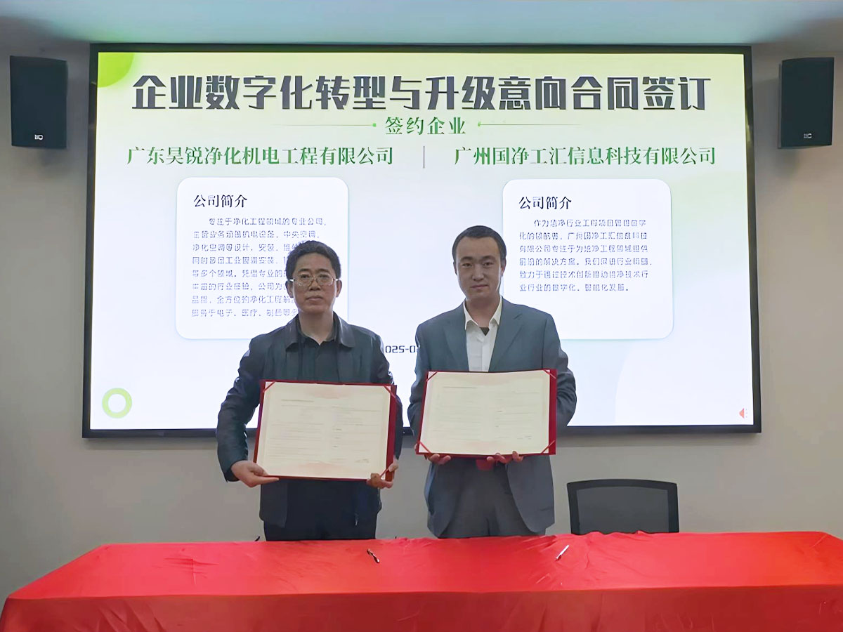 研討會期間,張勁松總經(jīng)理簽訂了潔凈技術行業(yè)數(shù)字化轉型合作意向書,未來昊銳凈化公司將繼續(xù)深化數(shù)字化轉型,為客戶提供更智能、更高效的凈化工程整體解決方案。中國潔凈技術行業(yè)協(xié)會秘書長張仲杰:"廣東昊銳的數(shù)字化轉型實踐為行業(yè)提供了寶貴經(jīng)驗,期待更多企業(yè)加入數(shù)字化生態(tài)建設。"
